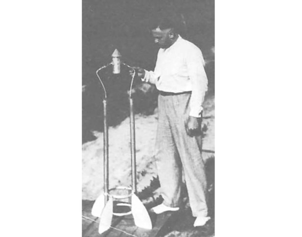 И. Винклер возле своей ракеты HW-1, из книги К. Гэтланда «Космическая техника» (epizodsspace.airbase.ru/Опубликовано в интернете)