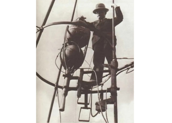 К. Ридель осматривает двухстержневой «Репульсор» на полигоне в Рейникендорфе. 1931 г. (Из книги К. Гэтланда «Космическая техника»/Опубликовано в интернете)