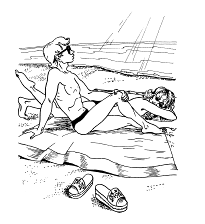 Хорошо, если у тебя будут с собой какие-нибудь кремы для загара или что-то в этом роде – можно помочь девушке растереть мазь по разным частям тела (скорее всего, она будет не против). Внутренне она, наверное, настроится на твое нескромное поведение, но ты обмани ее и будь подчеркнуто корректен: не лезь туда, куда тебе очень хочется попасть. Пока рано. Подожди немного, и девушка сама не выдержит.