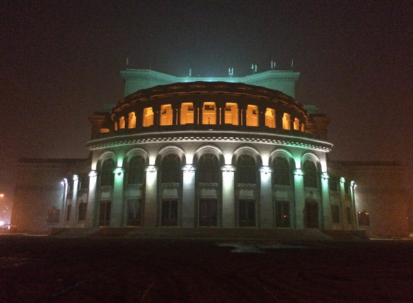 После заселения в хостел «Старый Ереван», который находится на окраине кварталов старого города, на улице Пароняна дом 6 (во внутреннем дворе дома через арку), я отправился на первое знакомство со столицей Армении, и дошел до здания оперного театра.