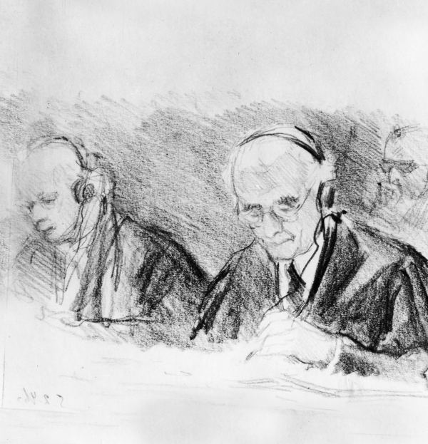 Судьи Никитченко И. Т., английский судья лорд Дж. Лоренс и Ф. Биддл