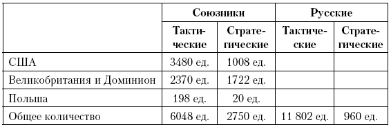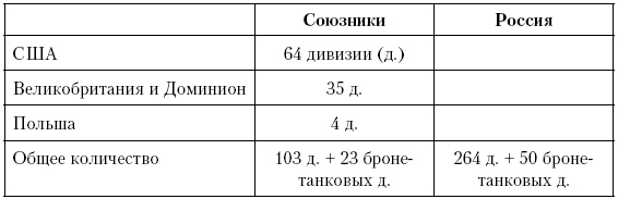 По своей структуре российские дивизии отличаются от союзных. По этой причине мы перевели значения для российских дивизий в количество дивизий, эквивалентных нашим. В таблице дается наша оценка общего количества вооруженных сил в Европе по состоянию на 1 июля: