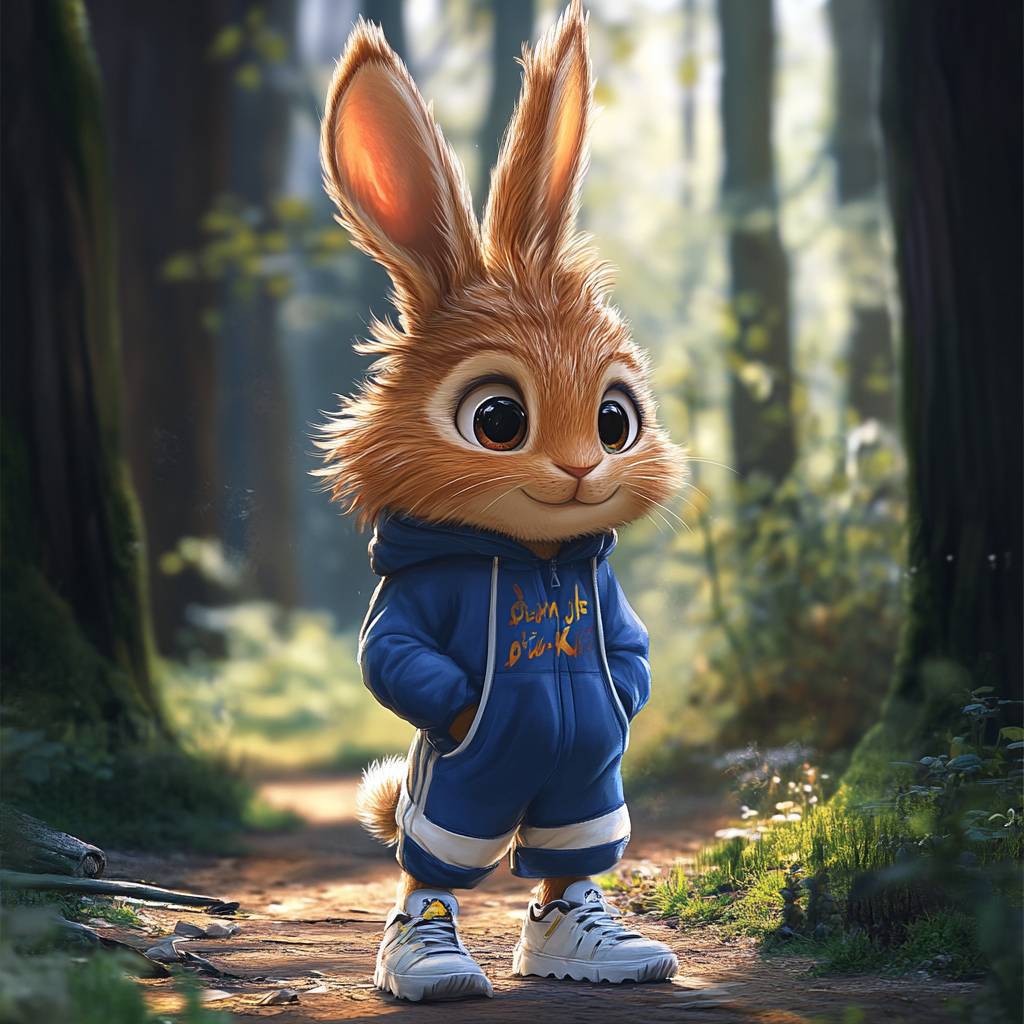 Карамелько был кроликом среднего роста и в меру упитанным. Его особой гордостью были уши – длиннее, чем у других кроликов, пушистые, а на кончиках с небольшими кисточками, словно у рыси. Его большие глазки, похожие на угольки с озорными искорками, с любопытством разглядывали окружающий мир. В повседневной жизни Карамелько носил синий спортивный костюм с белыми лампасами на штанах, а на лапках – удобные белые кроссовки с разноцветными надписями по бокам. Этот наряд помогал ему оставаться активным весь день.