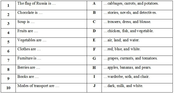 Задание 2. Соедините начало предложения (1—10) с подходящим окончанием (А-J).