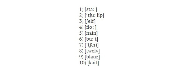 Пример: sorry – ударение на первый слог, hello – ударение на второй слог.