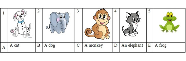 Задание 2. Соедините изображения животных (1—5) с их названиями на английском (А-Е).