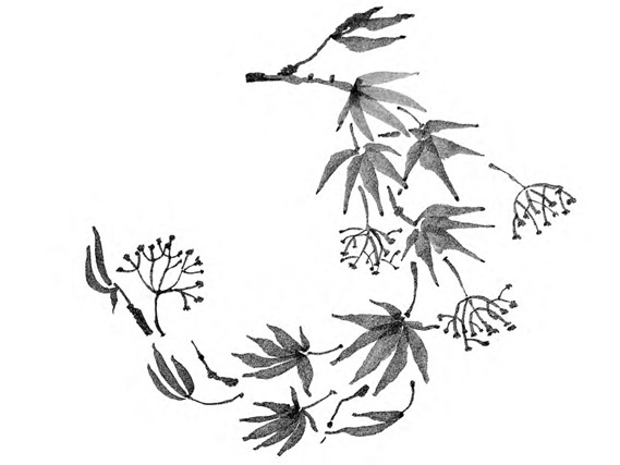 Снег лепесткамиОпадает, как прежде;С ветви на землюСрывается алый бутон.Кисть и бумагу возьму…