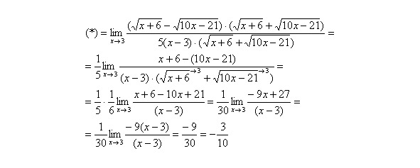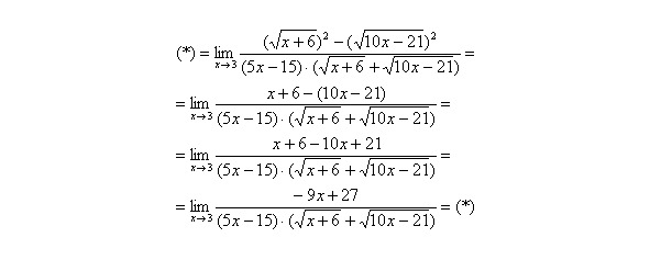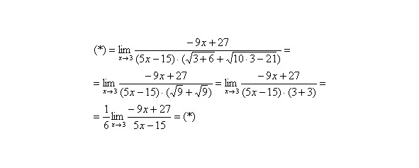 Неопределенность не пропала (попробуйте подставить тройку), да и корни тоже не исчезли. Но с суммой корней всё значительно проще, ее можно превратить в постоянное число. Как это сделать? Да просто подставить тройку под корни: