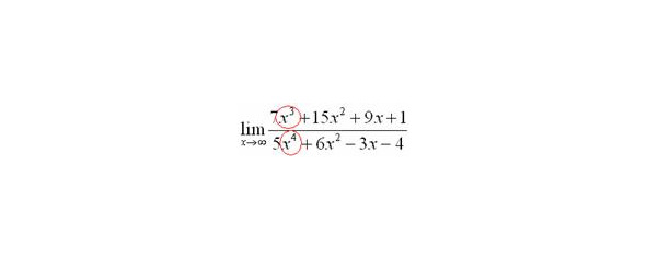 Сначала мы смотрим на числитель и находим в старшей степени:
