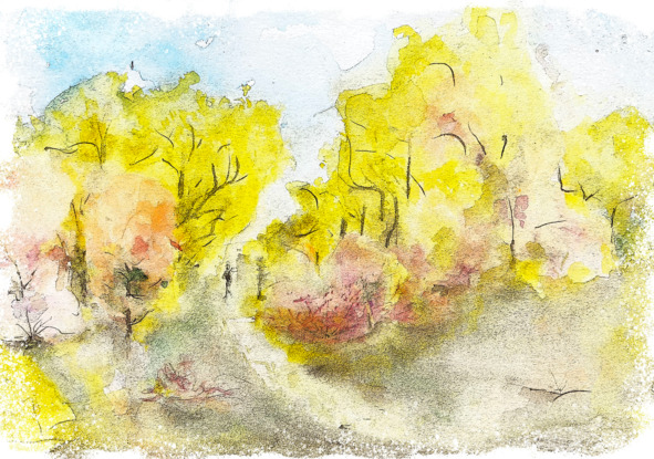 По бульвару быстро шла старушка в странном жёлтом платье. Платье было широкое и такое ослепительно-жёлтое, что, казалось, по бульвару катится солнце. Около детской площадки её ожидали двое маленьких детишек и пожилой мужчина. Все очевидно были рады ей. Я позавидовала и придумала стихотворение про себя: