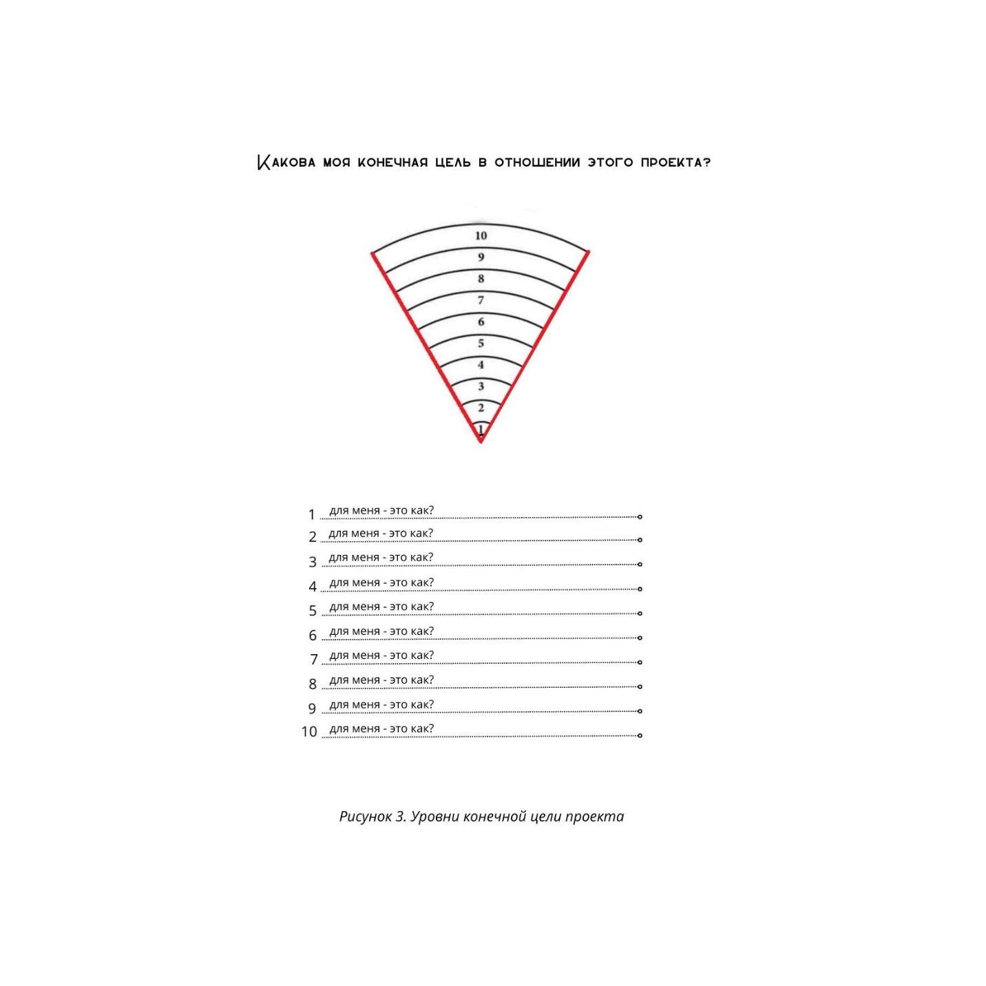 Когда ты определишь конечную цель проекта, спроси себя: «Какие этапы или уровни есть у поставленной цели?» и распиши, каждый из них для тебя – это как?