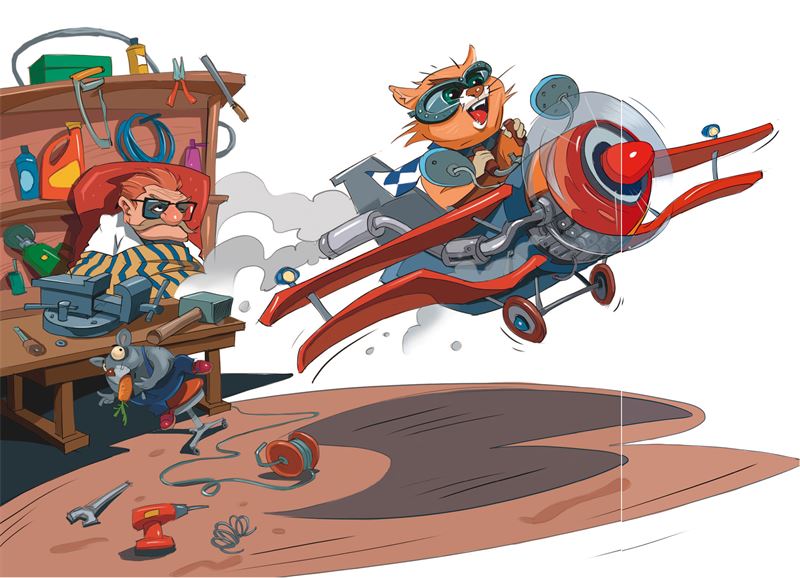 – Я тут самолёт кошачий ремонтирую. Мой человек без меня не справится. Вечно я улучшаю его изобретения. Без меня он давно уже взорвался бы! Возьми зелени с тумбочки. Для тебя приготовил, – сказал кот Щёчке.