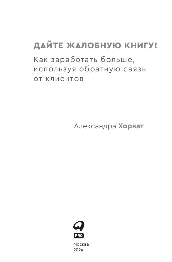 В этой книге я поделюсь наработками, полученными за три года ведения проекта по обратной связи. Книга «Дайте жалобную книгу!» станет для вас хорошим помощником в построении эффективной системы работы с отзывами клиентов, партнеров, сотрудников.