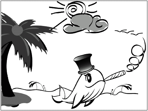 КОММЕНТАРИЙ к вашему рисунку. Мы не видим, что вы нарисовали. Однако у большинства людей получается нечто рыбообразное с сигаретой в зубах (вероятно, она дымится) и шляпой (кепкой, папахой, цилиндром…) на голове. При этом возможны некоторые добавления: кит плывет в волнах, на заднем плане может виднеться остров с пальмой или пароход с трубой, в небе парят чайки, светит солнышко, летят облака и т. д. В общем, вероятнее всего получилось нечто следующее (рис. 1)…