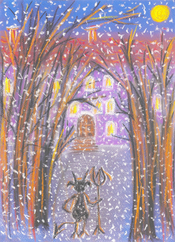 Спускаясь по лестнице, Пётр Сергеич почувствовал, как сердце заныло сильнее. И в дверях на первом этаже он внезапно остановился, столкнувшись с девочкой лет двенадцати, невысокого роста с растрёпанными, слегка завивающимися тёмными волосами и огромными чёрными глазами. На её ресницах блестели снежинки…