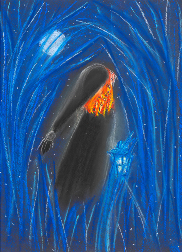 Я пошла куда глаза глядят, не понимая, ни где я, ни как теперь мне вернуться к своему Ангелу, но внезапно столкнулась с возникшей из ниоткуда рыжеволосой девушкой в чёрном плаще с длиннющим капюшоном-колпаком. Она была похожа на симпатичную ведьму, разве что метла отсутствовала.