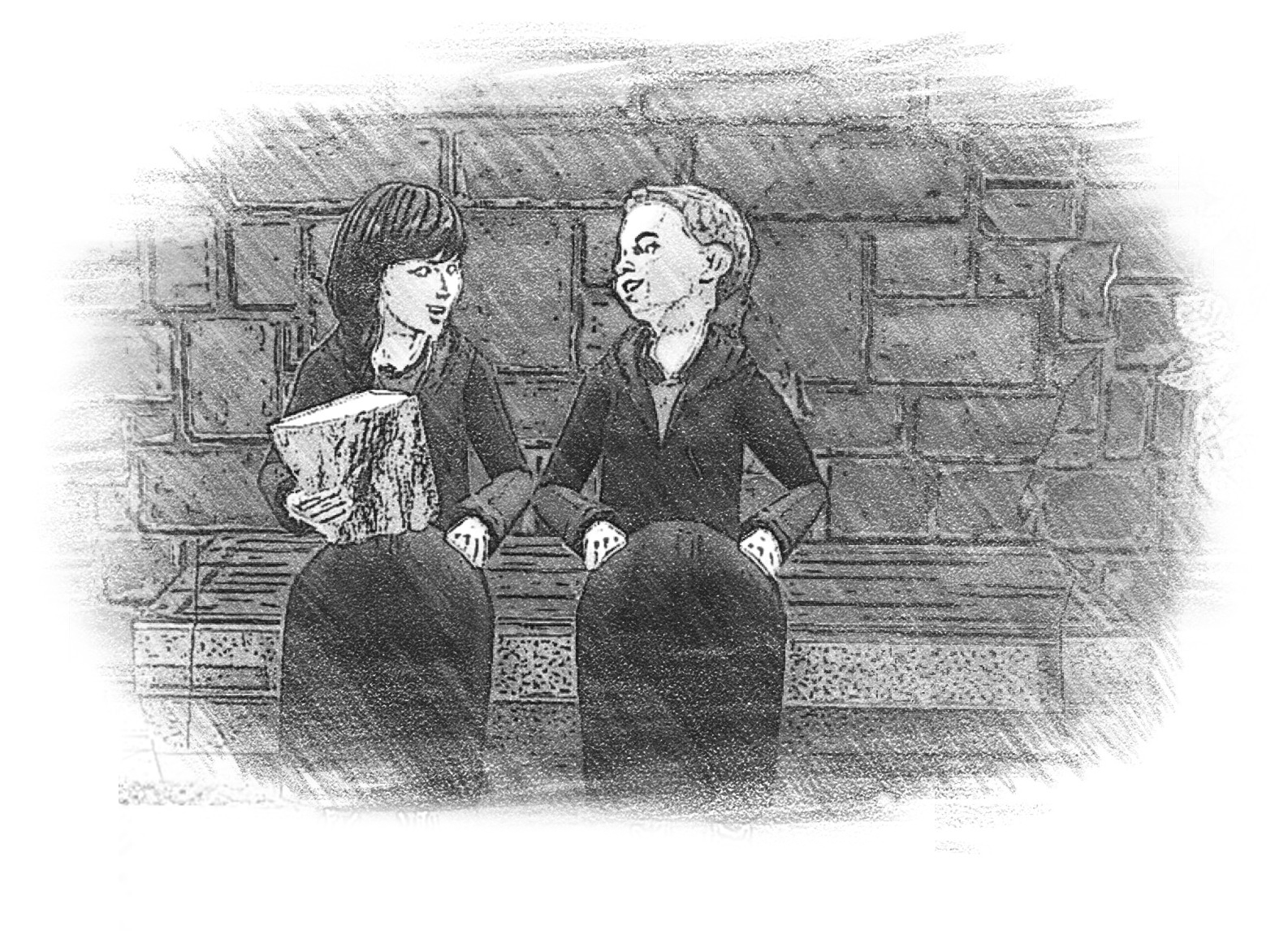 В комнате некромантов не было окон потому, что все спальни и вся школа находились глубоко под землей, зато на стене висели часы. Это были необычные часы. В дневное время на циферблате было солнце, следующее за часовой стрелкой, после полудня оно начинало убывать, постепенно появлялась луна, которая обозначала вечернее время.
