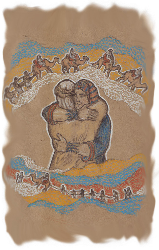 Иосиф, мудрость получивОт Бога, целый мир создавшего,Хранилища соорудив,Запас зерна на время страшное.О хлебе этом услыхав,Пустились в путь сыны Израиля.Иосиф, братьев всех узнав,Открылся им… Все долго плакали…Простив, от всей души простив,Снабдив добром и в путь отправив их,Иосиф братьев попросилПривесть отца и всех родных своих,Чтобы все близкие моглиВ земле Гесем пожить, не бедствуя,И чтоб Иаков дожил дни,С родным Иосифом соседствуя.Вот годы голода прошли,Господь носил, питал детей Своих,И на полях чужой землиБог их отцов весьма размножил их.
