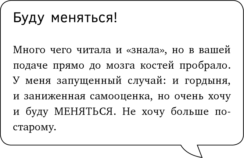 Есть три типа людей. Первые никогда не возьмут в руки эту книгу, потому что «все это бред и люди – идиоты». Вторые прочтут из интереса, чтобы узнать что-то новое. Для третьих же это будет сотая попытка разобраться со своей самооценкой раз и навсегда. У меня путь от третьих до вторых занял много лет.