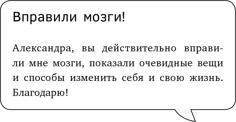 Я буду рядом с вами каждую минуту. Буду держать вас за руку, когда внутри вас поднимется буря из всего этого застарелого мусора, когда захочется оставить все как есть, ведь живут же люди с «головной болью». Я буду вытирать ваши слезы, когда вы прочтете историю о себе. И я буду пить с вами шампанское, когда в ваших глазах снова загорится огонь страсти к жизни!