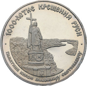 Одна из многочисленных юбилейных монет, выпущенных к 1000-летию Крещения Руси: 25 рублей 1988 года «Памятник князю Владимиру»