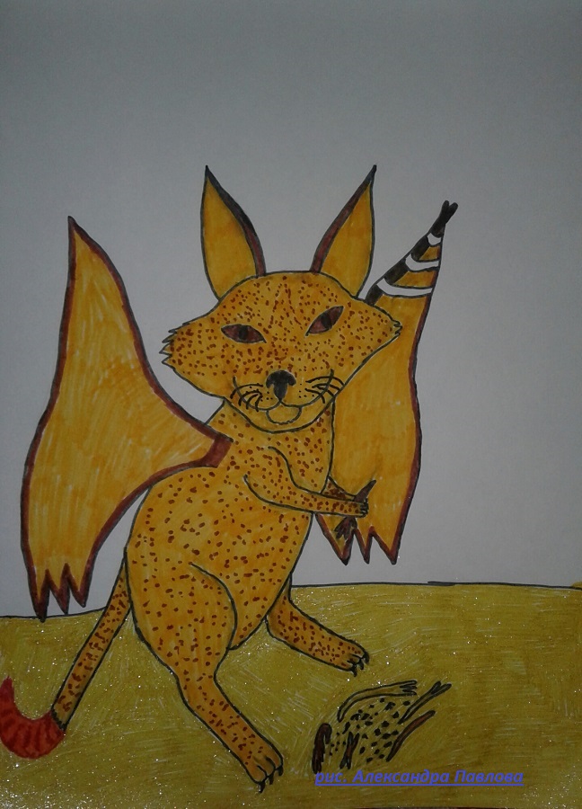 Найденный тушканчиковый лисопрыгунчик был застигнут врасплох и ранен местными дворовыми собаками. У него было сломано крыло и ранена задняя лапка. Но собак он смог отогнать от себя огненных хвостом.