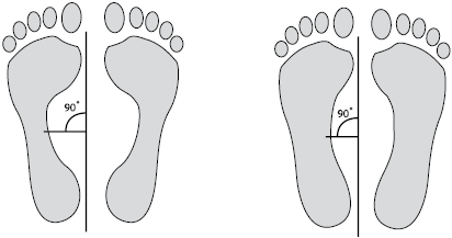 Для этого достаточно намазать подошвы любым жирным кремом и встать на чистые листы бумаги, расположенные на ровном полу. На каждом листе останется по четкому отпечатку стопы. Возьмите линейку и карандаш и проведите прямую линию вдоль отпечатка внутреннего края стопы, где есть так называемое подошвенное углубление, а потом через углубление следа в самом глубоком его месте проведите еще одну прямую линию – перпендикулярно первой прямой.