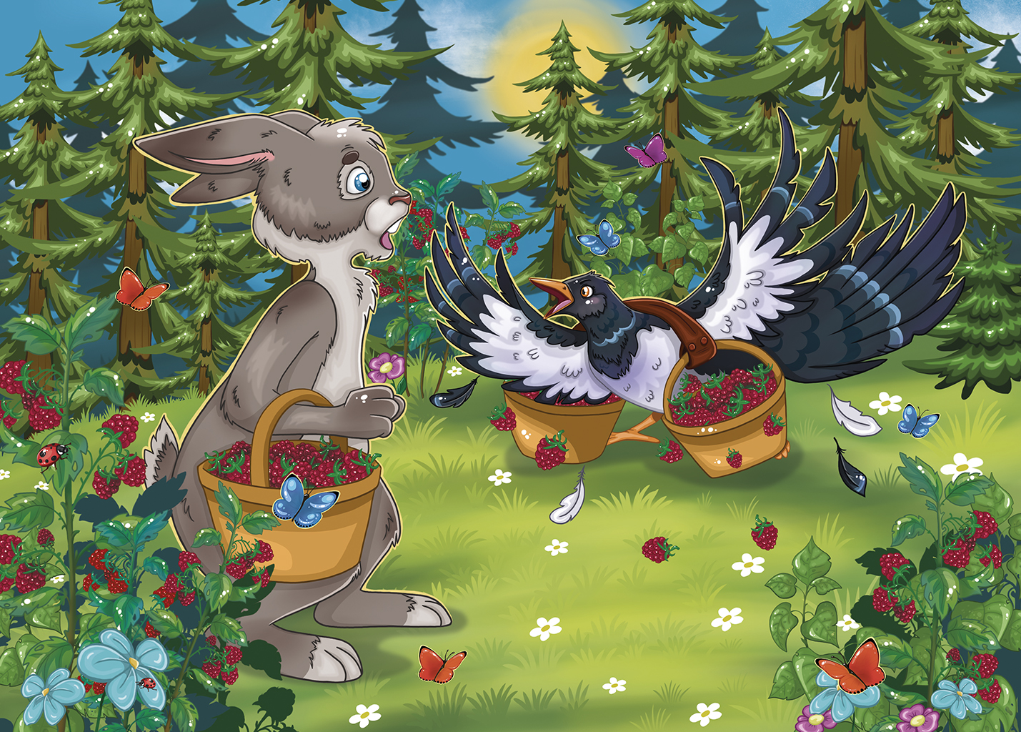 – Но я, но я… – Заяц замолчал, так как Сорока взлетела. Сделать это гордо у неё не вышло: перегруженные малиной корзины качали её из стороны в сторону.