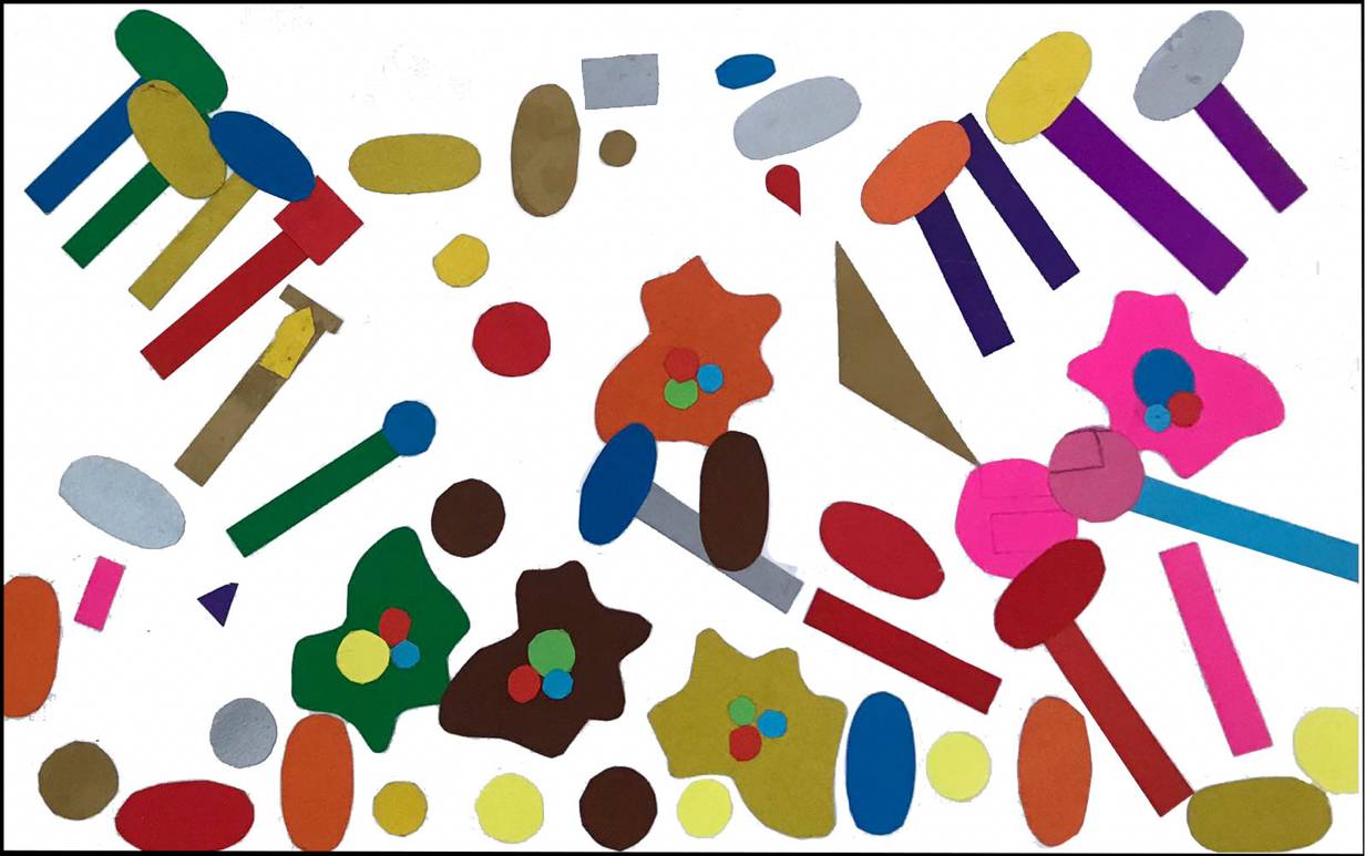 Использованные материалы: вырезанные разноцветные фигурки по фигурным линейкам.