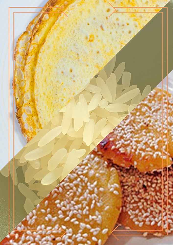 Яйца хорошо взбить миксером или венчиком, добавить кокосовое молоко, стакан теплой воды и соль. Полученную жидкую смесь тонкой струйкой влить в рисовую муку, добавить кунжут или кунжутное масло. Тщательно все смешать. Оставить тесто примерно на 2-3 часа при комнатной температуре. Перед жаркой добавить газированной воды и довести тесто до жидкой консистенции.