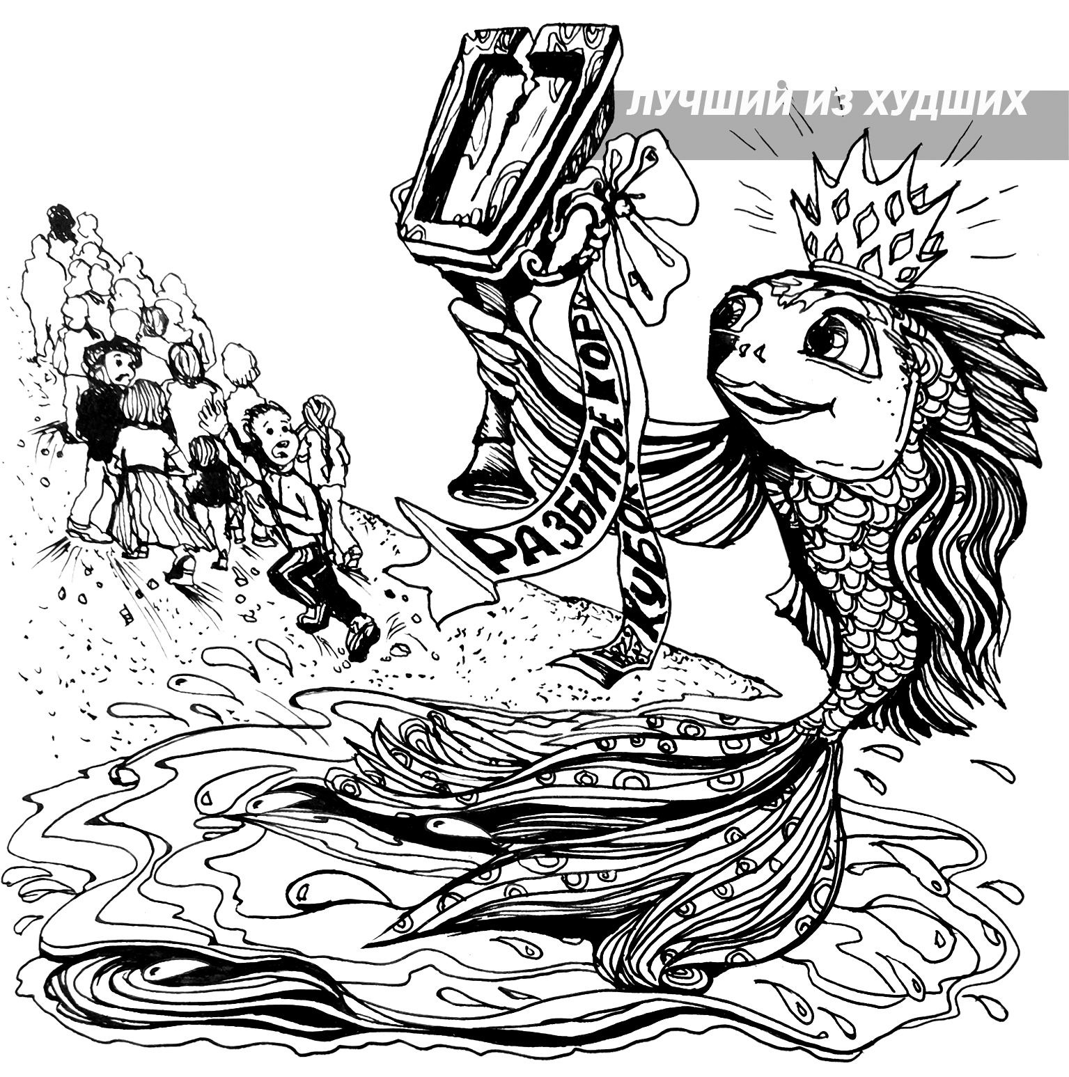 Автор пока не встречал людей, которым это удалось! Всех гениальней этот переходящий приз описал А.С. Пушкин в "Сказке о рыбаке и рыбке". И вроде бы сюжет концентрирует наше внимание на жадной деспотичной бабке, на безвольном деде и волшебной рыбке. И все забывают о переходящем кубке – разбитом корыте, которое вручают за сомнительные достижения. Александр Сергеевич написал не сказку, а инструкцию, как получить разбитое корыто и как от него избавиться. Чтобы получить его, надо стать худшим из худших, занять первое место по отрицательному качеству, и какой-то срок оно будет твое.