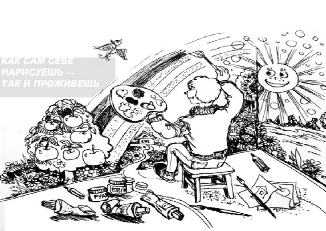 – Нарисовать картину «У меня все хорошо». Например, вы плывете в лодке по реке. Кого хотите изобразить рядом? С кем встречаетесь на берегу? Далеко ли держите путь? Управляете ли сами лодкой или кого-то попросили? Норовит ли кто-то без вашего разрешения залезть к вам и едет за ваш счет? Как ярко светит вам солнце?