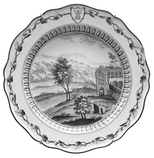 Грандиозные торжественные приемы и обеды с присутствием царственных особ во дворце устраивались несколько раз в год, а значит, необходим был настоящий дворцовый сервиз. И царица заказывает большой комплект посуды на 50 персон, обеденный и десертный, состоящий из 950 предметов. Казалось, что же здесь удивительного, обычное дело для придворных будней. Удивительна тема, которой посвящен этот сервиз, такой заказ мог сделать только большой любитель и знаток архитектуры! Государыня пожелала, чтобы сервиз для нового дворца был украшен… архитектурными пейзажами Британии: изображениями английских поместий, видами валлийских городов и особняков, шотландских замков и аббатств, старинных крепостей и усадебных парков. «Хочу, чтобы вся Англия была у меня на столе!» – так в 1774 году сформулировала заказ Екатерина II знаменитому английскому художнику-керамисту Джозайе Веджвуду, такой проект был под силу только ему. Фабрика Веджвуда выпускала фаянсовые изделия особого сливочного цвета очень изысканных форм, что и понравилось русской царице. Каждый предмет был расписан вручную сепией, в обрамлении дубовых ветвей был изображен элегантный пейзаж. Всего насчитывалось 1222 вида, ни один не повторялся, создавая уникальную панораму всей Британии. Перед отправкой в Россию Веджвуд устроил выставку в Лондоне, она имела широкий резонанс и сыграла значительную роль в создании позитивного имиджа Российской империи.