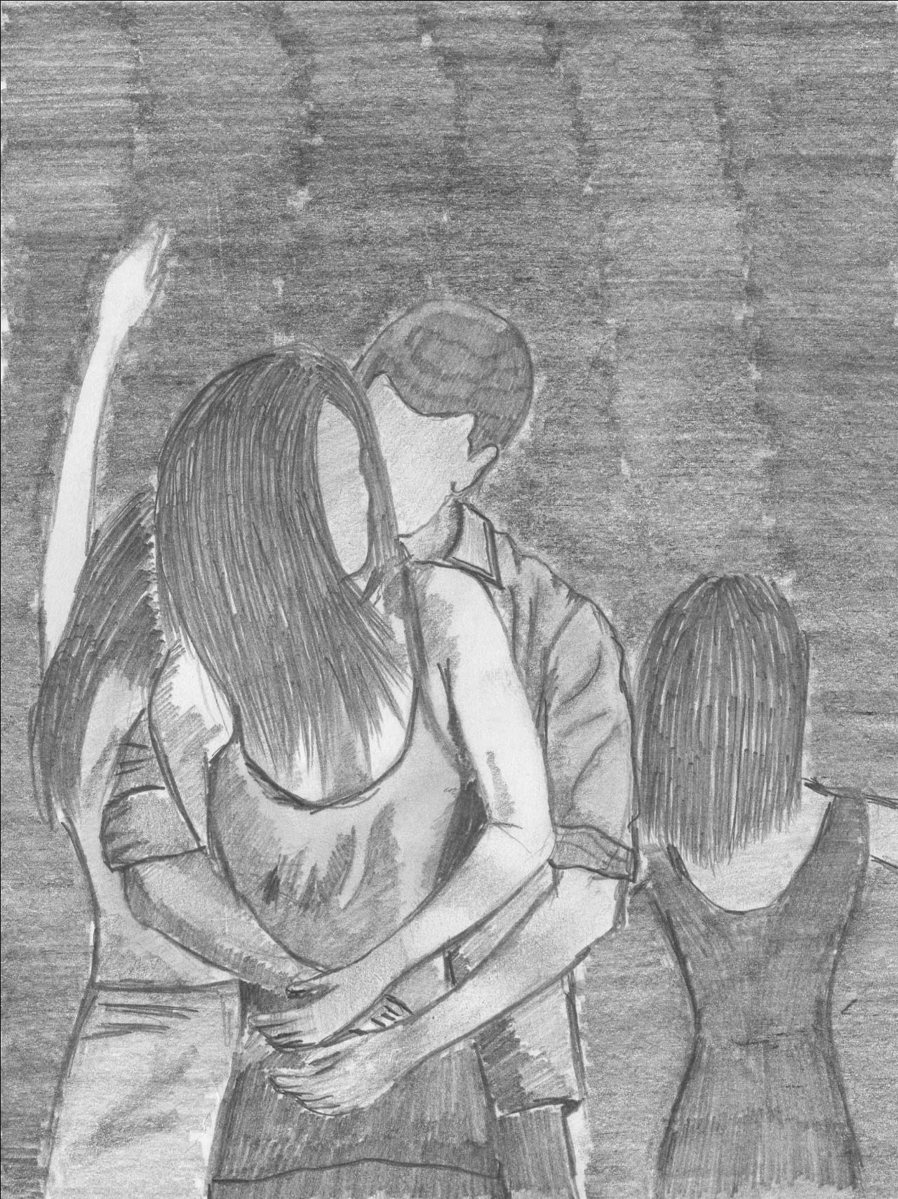 – Сань, это Даша! – прокричал Артем, пытаясь вывести своего друга из состояния эйфории. Саша очнулся, улыбнувшись девушке, и вручил ей свой маленький сюрприз, спрятанный в самодельном конверте. Она милым голосом его поблагодарила, положила букет с конвертом на стол и села обратно на диванчик.