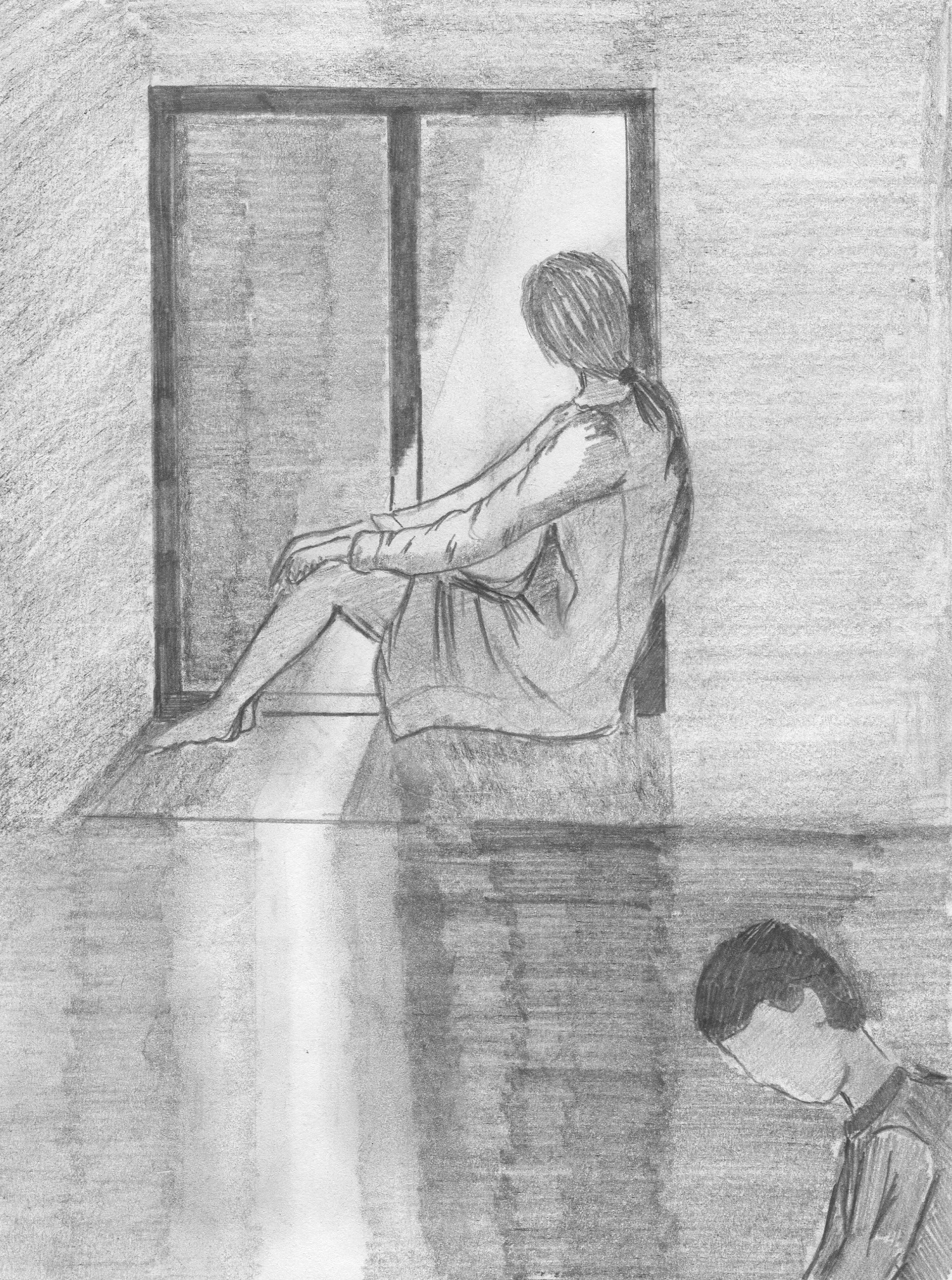 Он вышел из комнаты, а девушка, не обращая на него внимания, осталась неподвижно сидеть на подоконнике, глядя в окно.