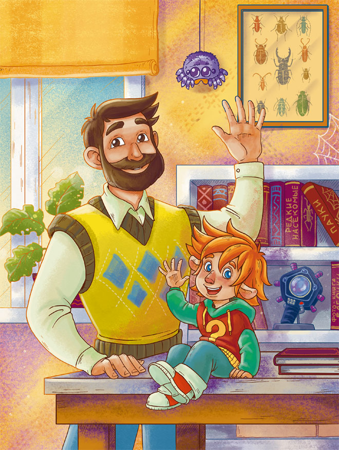 – Дядя Кузя! Это может быть очень опасно: я слышал, что у пауков есть страшно ядовитое жало. Вот, возьми тапочку. Жаль, нет ружья…