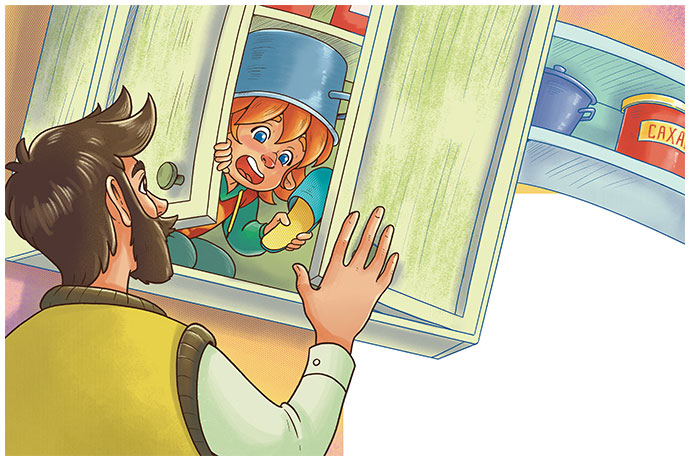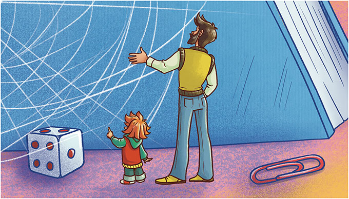 – Ай! Дядя Кузя, не трогай паутину, мы же сейчас размером с мушку – того и гляди будем рядом с ней висеть и дёргать ножками.