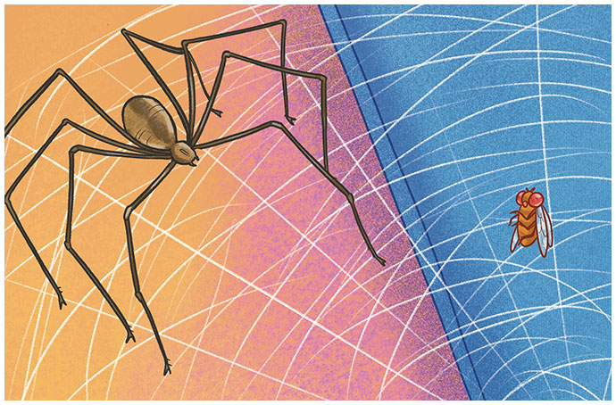 – Смотри, Чевочка, пауку в паутину попалась плодовая мушка – самое что ни на есть насекомое. Какие различия ты сможешь между ними найти?