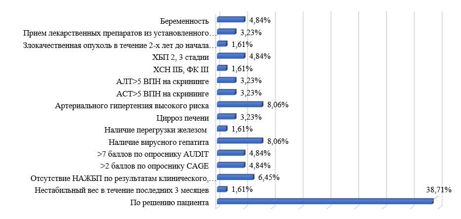 Распределение пациентов, не включенных в исследование на этапе набора согласно причине выбывания, представлено на рисунке 2.