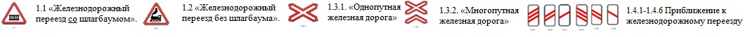1.1 «Железнодорожный переезд со шлагбаумом». (Вне населенного пункта устанавливается дважды, за 150-300 м.)
