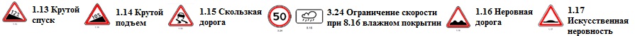 Как правило, данный знак устанавливается совместно с ограничением максимальной скорости (3.24), влажное покрытие (8.16) и предупреждает водителя учитывать, что дорожное покрытие имеет сниженный коэффициент сцепления колеса с дорогой, что может привести к уводу ТС от первоначальной траектории движения.