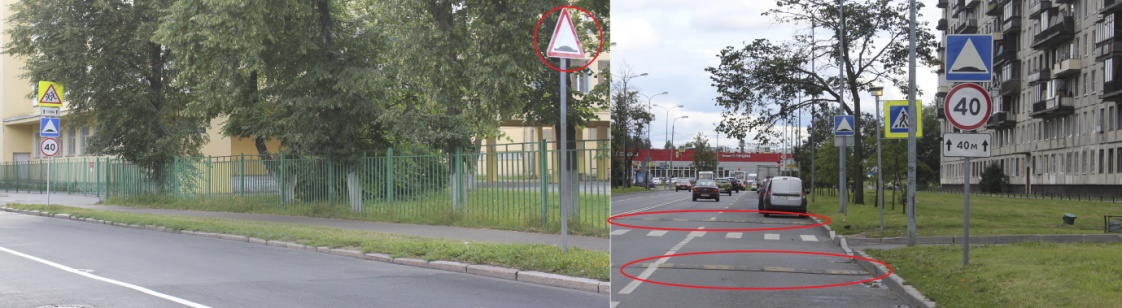 Рис. 9 Знак 1.17 и знак 5.20 для принудительного снижения скорости