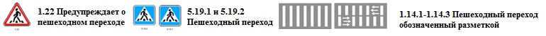 1.22 «Пешеходный переход». Пешеходный переход обозначенный знаками 5.19.1, 5.19.2 и (или) разметкой 1.14.1 – 1.14.3.