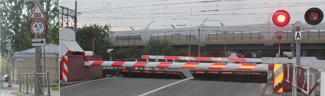 Рис. 1 Железнодорожный переезд с автоматическим опусканием шлагбаума