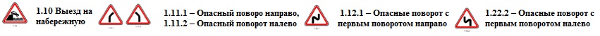 1.12.1, 1.12.2 «Опасные повороты». Участок дороги с опасными поворотами: 1.12.1 – с первым поворотом направо, 1.22.2 – с первым поворотом налево.