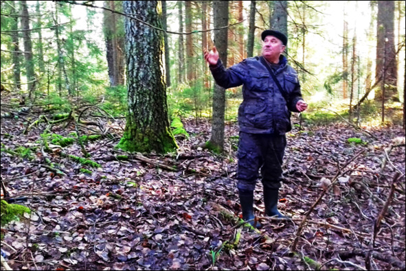 Мы вышли из 66-го квартала в сторону 67-го квартала, по краям дороги попадались лисички и многочисленные семейки боровых маслят. На моём кнопочном «мобильнике» играла музыка, от «Богатыских ворот» Модеста Петровича Мусоргского до песен «Выйду ночью в поле с конём», «Струги, мои Струги…», «Снится мне деревня». Внезапно сосновый бор сменился на еловый лес, дорога пошла на спуск. В самой низшей точке мы дошли до сырой мокрины, которая была видна и на дороге, и сбоку. За мокриной дорога идёт вверх, там впереди начинаются Зеленицкие горы. Здесь, в 67-м квартале, точно был медвежий угол – мрачный, сырой угол. Мы повернули в обратную сторону, шли параллельно дороге, не упуская друг друга из виду.