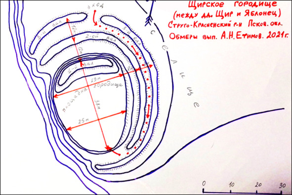 План Щирского городища. Сост. А. Н. Ефимов, октябрь 2021 г.