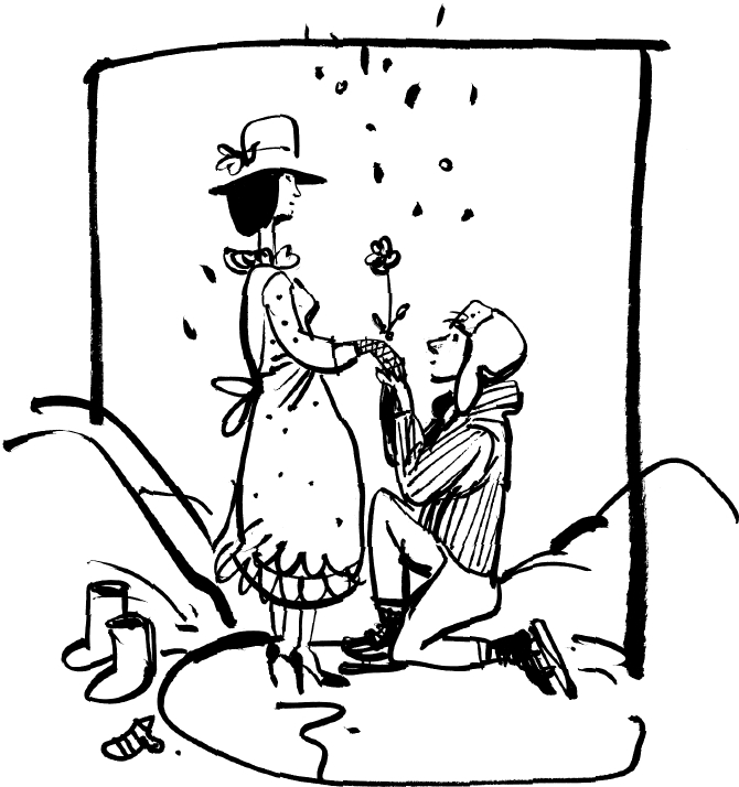 Мишаня купил коньки и пластмассовую розу, а Гиза – перчатки до локтей и шляпку с шёлковым цветком на тулье. Потом они ждали полной луны. Потом довольно долго искали на реке подходящее место. В тот вечер Мишаня оставил обувь дома – и всю дорогу ему пришлось ковылять на коньках. Но Гиза была неумолима: всё должно пройти в точности так, как она задумала.