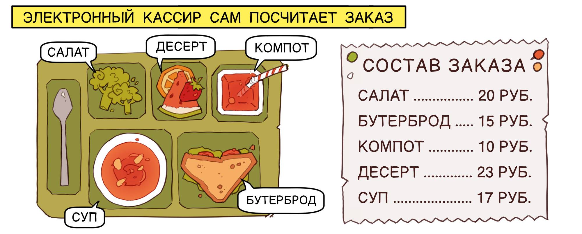 Давайте перейдем к проработке этапов цифровизации столовой. Они будут примерно такими же, как и в случае с гаражным кооперативом. Во-первых, необходимо приобрести новый кассовый аппарат с возможностью безналичной оплаты с помощью карты. Я не предлагаю «купить» его. Многие банки сейчас выдают оборудование в аренду под определенный процент с сумм, поступающих с карт. А так как всем студентам и преподавателям стипендия и зарплата, соответственно, приходит именно на карту, то можно смело ввести запрет на прием наличных денег. Благодаря безналичной оплате ускорится обработка заказов, вырастет количество продаж, и затраты на аренду кассы будут компенсированы возросшей прибылью.