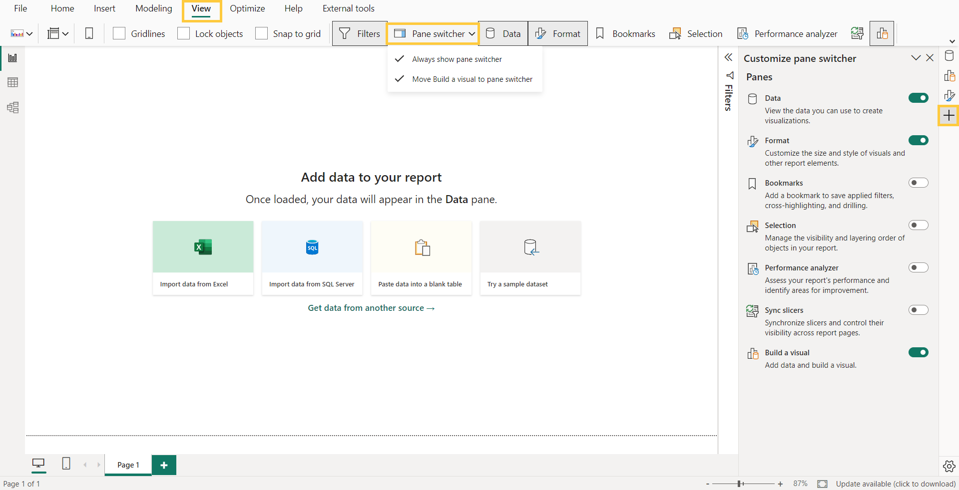 Power BI легко освоить по аналогии с MS Excel и PowerPoint. Основные элементы интерфейса: